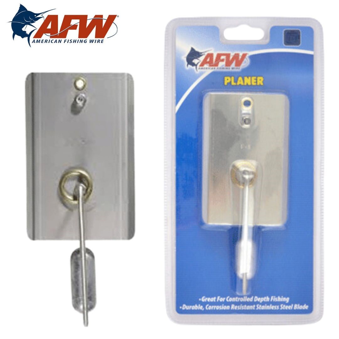 The AFW Planer is an innovative and precisely balanced piece of fishing gear. A lead weight acts as a keel and balance to keep the planer running stright at controlled depths. When the planer is in the water in diving position, water pressure against the blade forces the planer down. When a fish strikes, the balance is changed. The planer then trips and produces a slight upward drag, which allow you to fight your fish rather than a heavy lead sinker.
