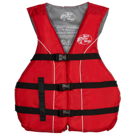 Keep safe on the water with our Bass Pro Shops® Adult Universal Life Jacket. Built tough with a rugged yet soft polyester shell and liner generously filled with PE foam, this universal life jacket features skived front panel foam and a hinged foam back for ultimate reliability and worry-free comfort. 3 adjustable belts and quick-release buckles on the Bass Pro Shops Adult Universal Life Jacket ensure fast and easy on/off. Form-fitting sides and back panel enhance comfort for enjoying your days on the water.