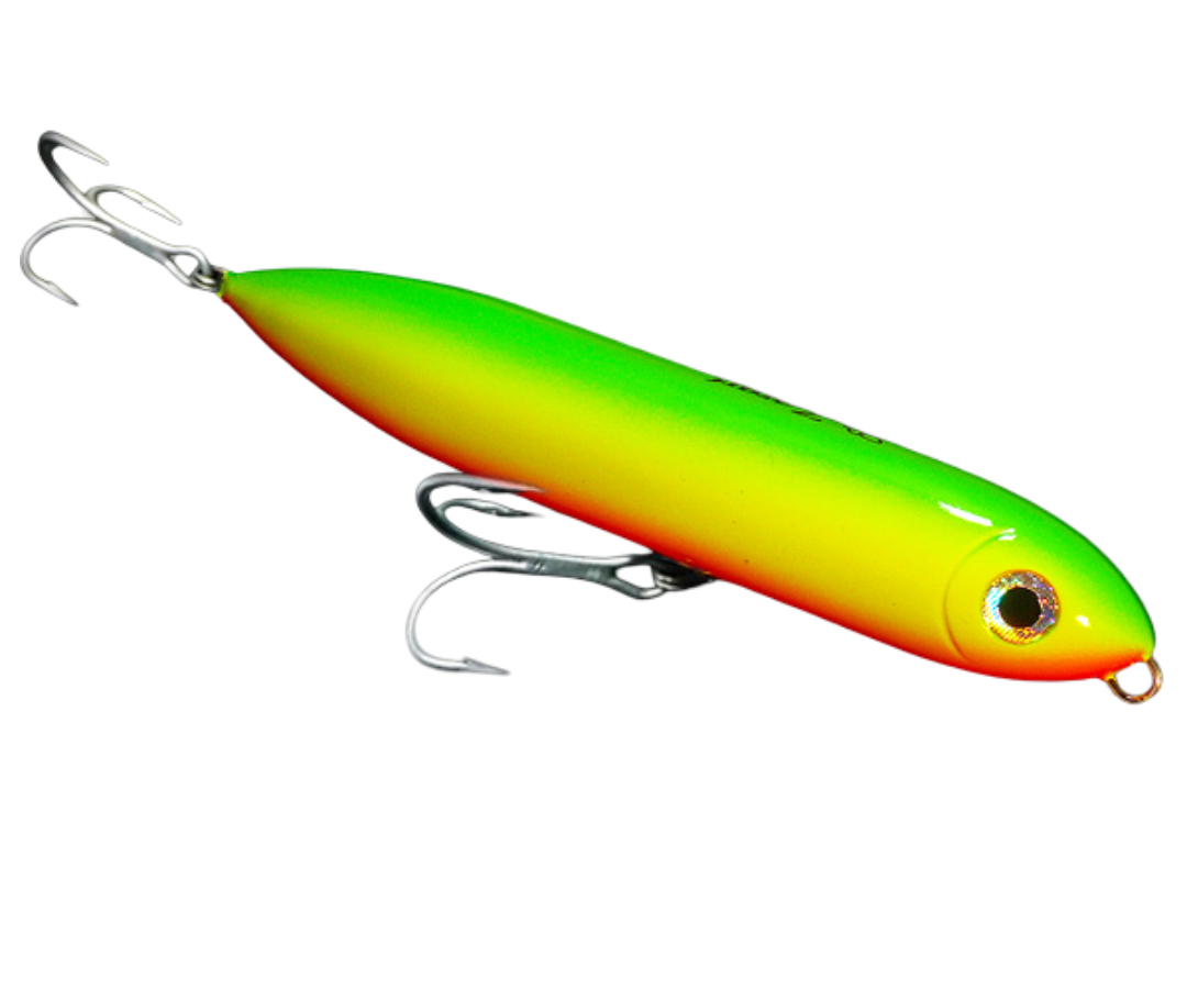 The Zarari top water walk the dog lure or Z movement. It has a loud ratlin and weight concentrated in the tail, offering a long cast for anglers. The lure is used for peacock bass , blue fish, golden dorados and much more.