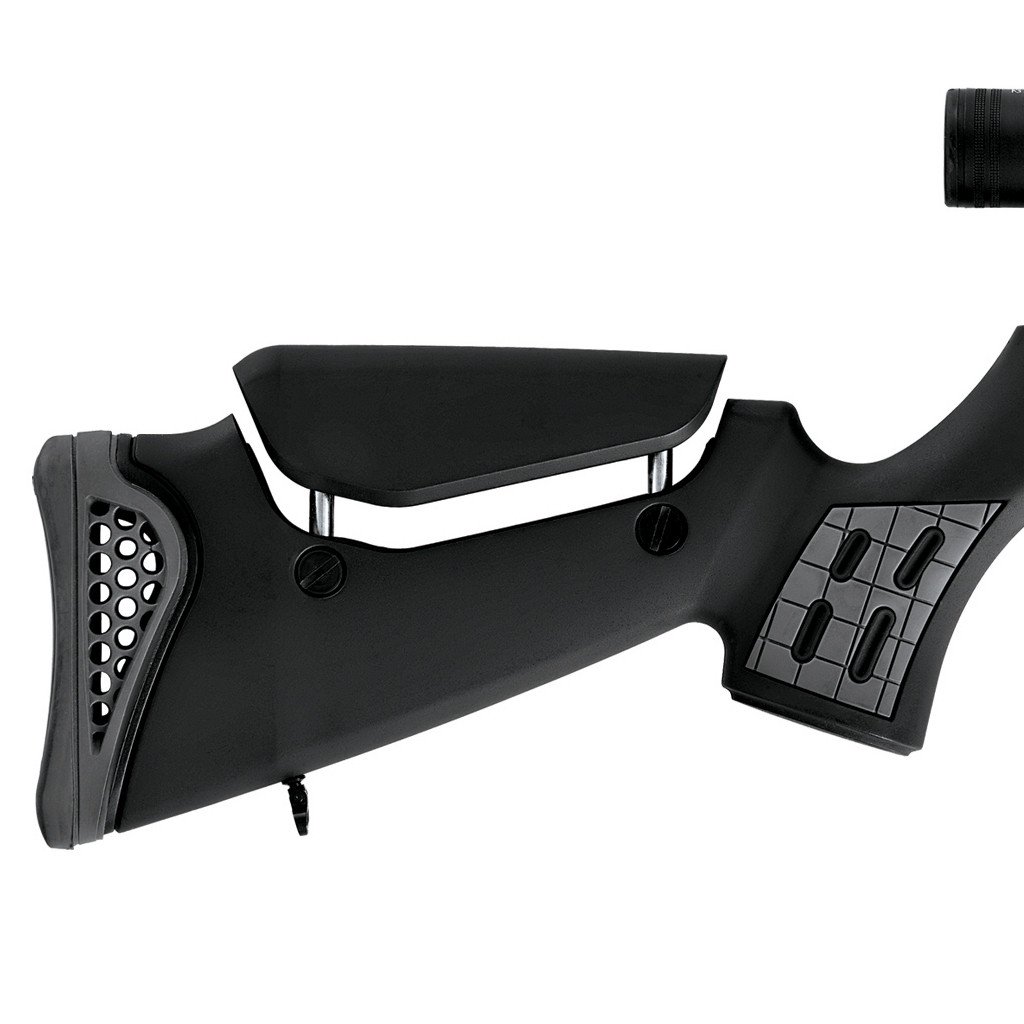 Hatsan’s Model 125 Sniper Vortex QE Combo offers long-range power and accuracy. This single-shot, break barrel air rifle offers superior comfort and adjustability compared to our standard Mod 125. Available in both .22 and .25, this air rifle maxes out at 1250 FPS (.22 cal lead-free pellets) and up to 34 FPE (.25 cal). The Mod 125 Sniper Vortex QE has a black, ambidextrous synthetic stock but also comes in the Mod 125 Sniper Camo Vortex QE with the Mossy Oak Break-Up Camo pattern on an ambidextrous synthetic stock. Both comes with an upgraded Monte Carlo elevation adjustable cheek piece and raised soft rubber inlays on the grip and forearm for better control and an ergonomically comfortable feel.