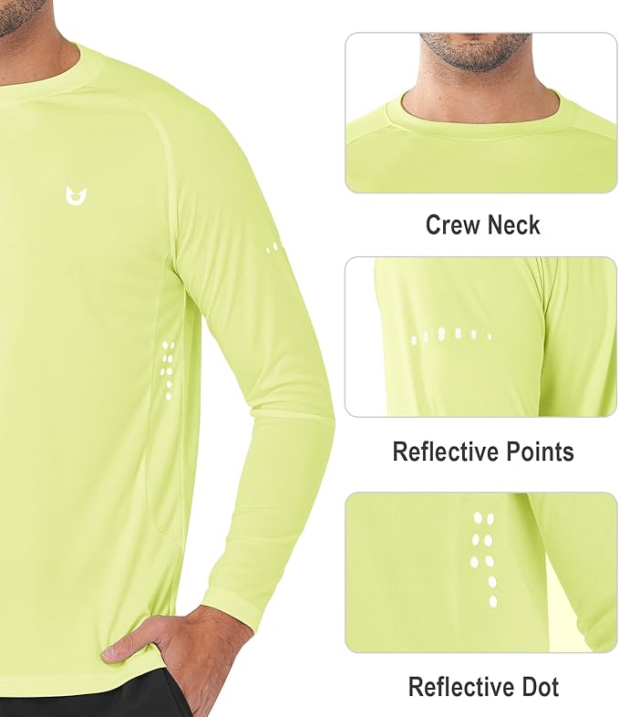 - athletic spf shirt features a stylish reflective dot design (distributed under the armpits and on the outside of the arms), allowing you to improve sports safety in low light