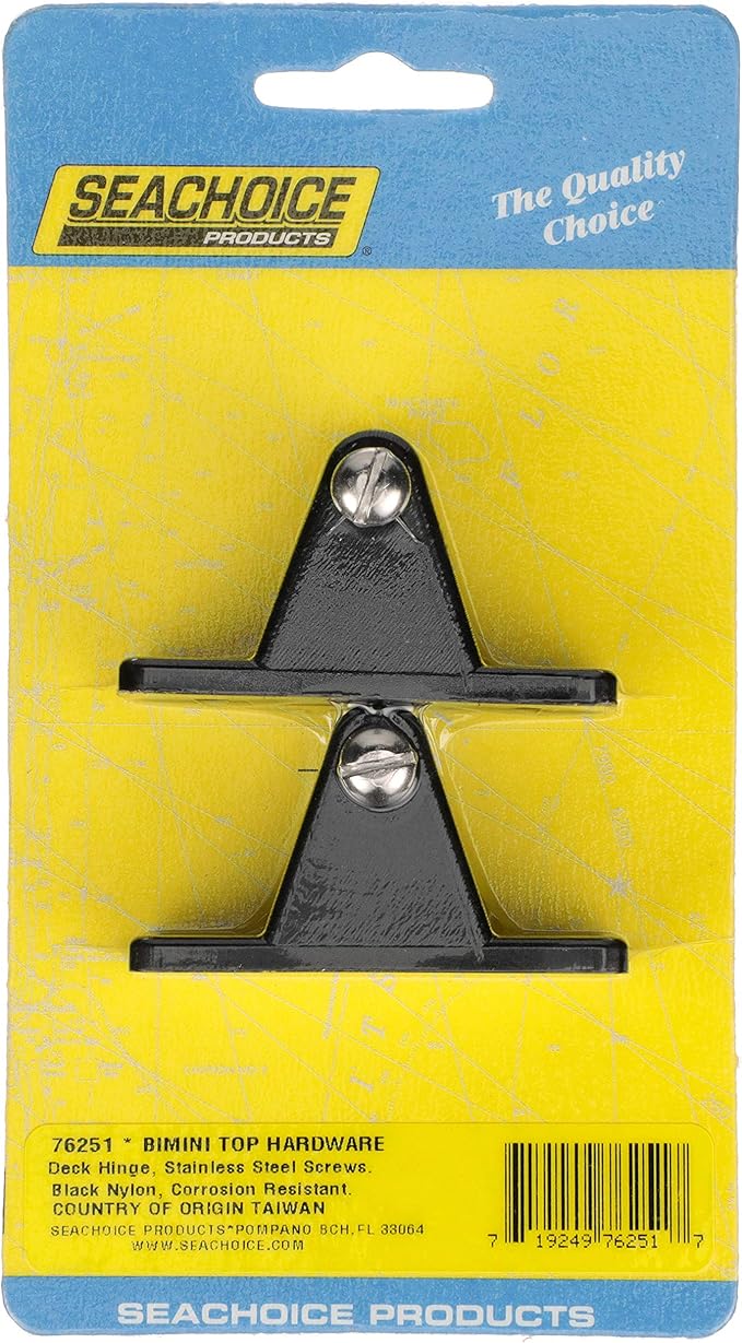 Seachoice Deck Hinges are excellent replacement hardware for bimini tops found on most of today’s pontoon boats. Constructed of rust-free, impact-resistant nylon, these deck hinges are built to withstand the rigors of harsh marine environments. Seachoice is committed to delivering quality marine accessories and OEM replacement parts to satisfy fishing, boating and watersports enthusiasts worldwide.