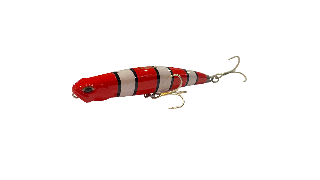 The Top Stick is a lure developed by Yara that stands out from other stick swim lures on the market. The difference lies in the tungsten weight at the back, which ensures better balance for the lure, allowing it to float much faster. Another important detail is the design of its concave mouth, which was designed to make noise and leave bubbles on the surface when the lure is worked.