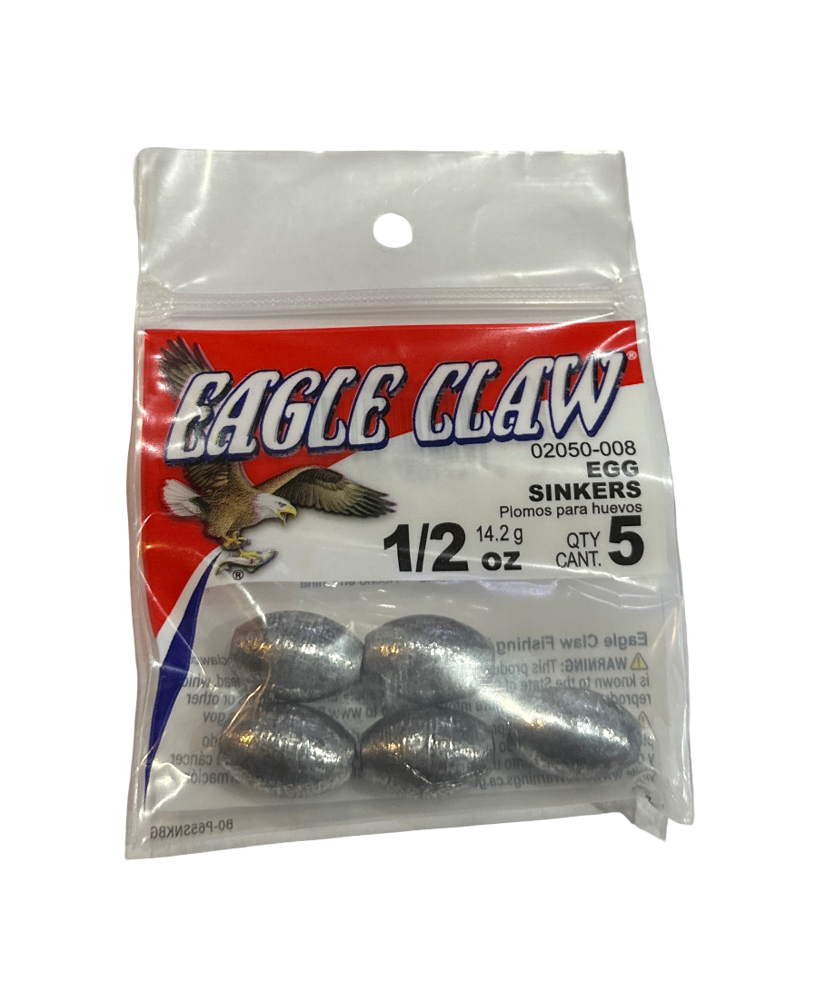 Eagle Claw Egg Sinkers allow baits to get to the bottom and rolls through the weeds and rocks. Great for rigging or throwing bait, the large center allows the line to freely slide on the line, fish don’t feel the weight until it is too late.