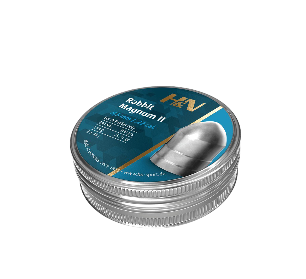Very heavy hunting projectile for long ranges. Unique aerodynamic torpedo design. Maximum possible impact and maximum penetration. Lowest rate of lead fouling and consistent shot spreads thanks to special alloy. Attention: Only for PCP-rifles